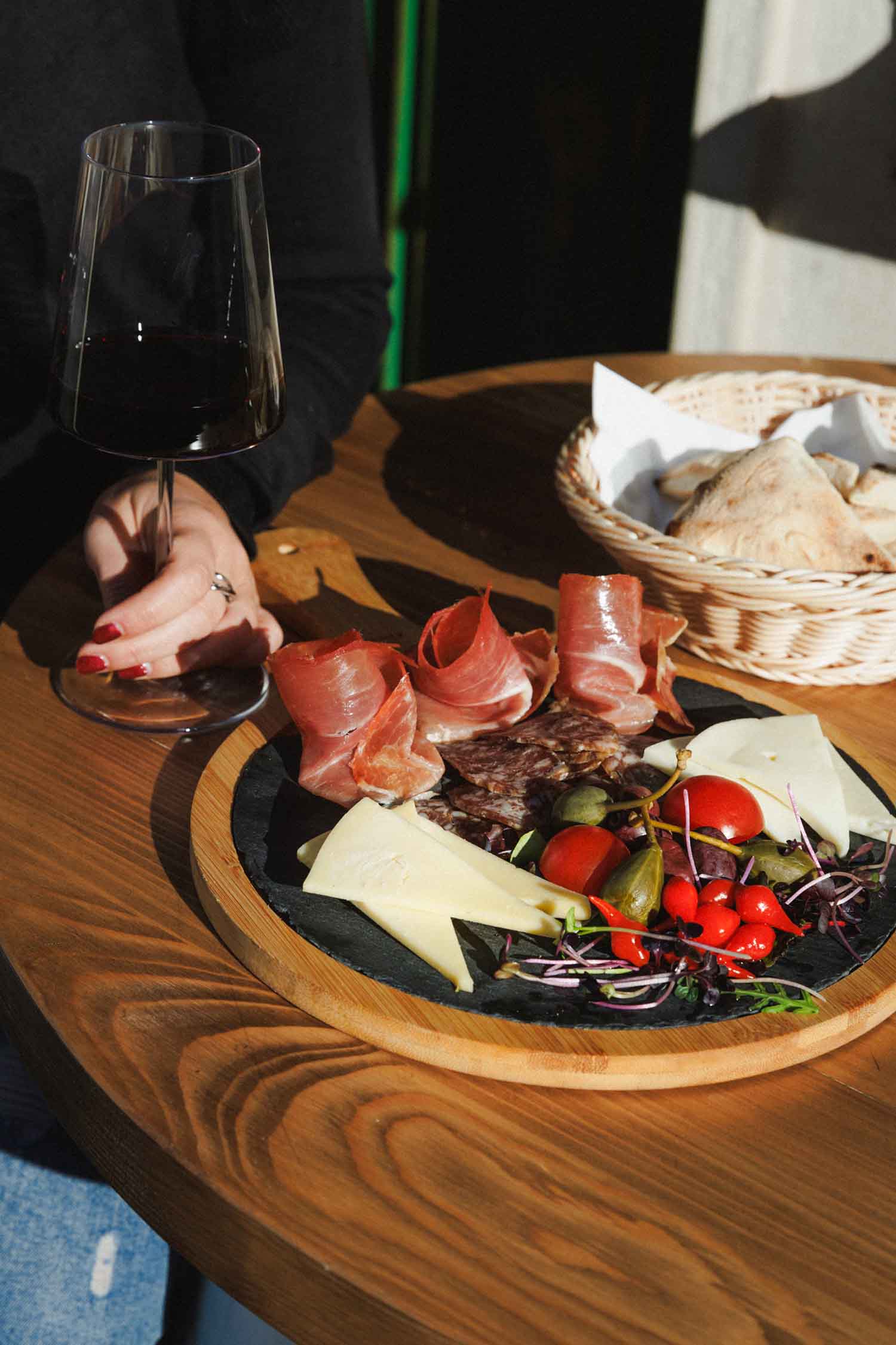 Domaći pršut, istarska kobasica, težački i kravlji sir, masline, cherry rajčica
