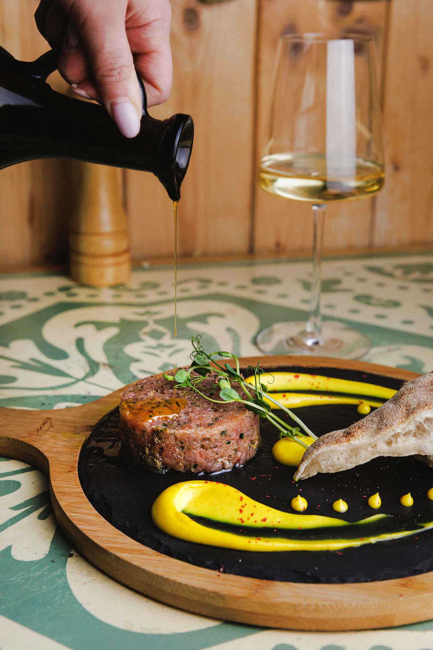 Sitno sjeckana sirova tuna, maslinovo ulje, sok limete, kapari, peršin, aioli majoneza
