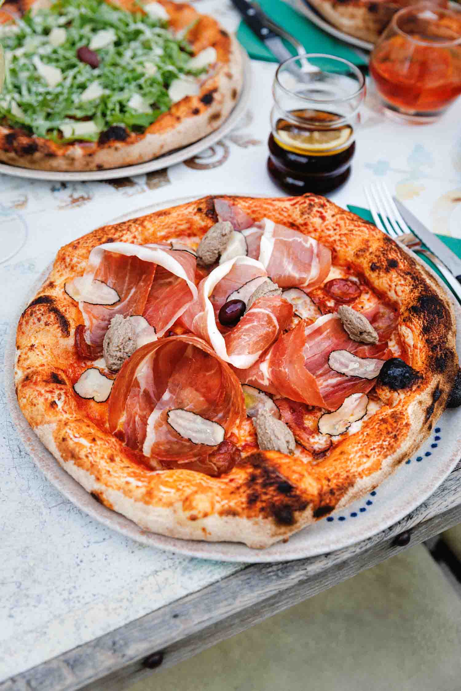 Pelati, sir, pršut, panceta, kobasica, tartufi, ulje od tartufa, maslina, origano