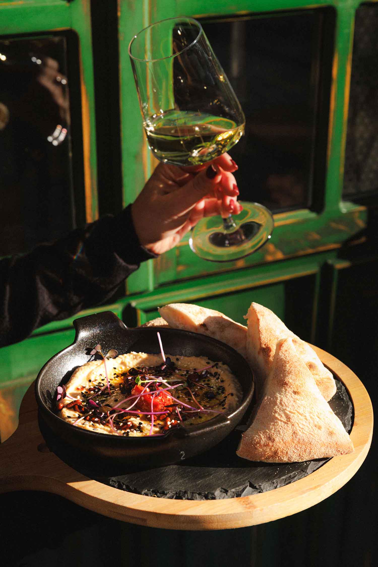 Namaz od slanutka, maslinovog ulja i limuna, tahini, domaće pecivo